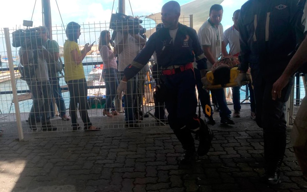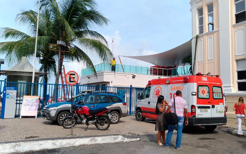 Passageiro é resgatado pelo Samu no terminal Náutico de Salvador (Foto: Juliana Almirante/G1)
