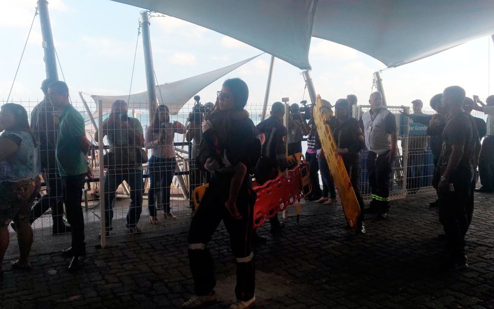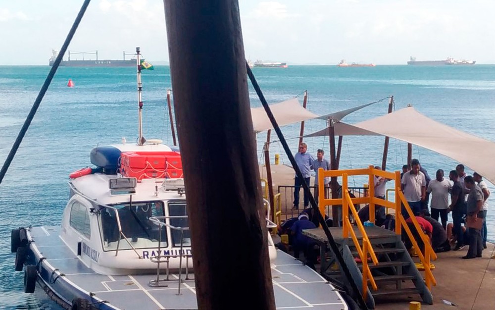 Samu e Polícia Militar estão no terminal Naútico de Salvador para dar suporte (Foto: Juliana Almirante/G1)