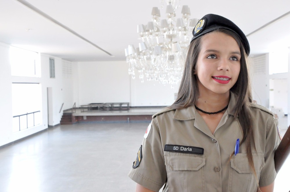 Entre viaturas da Polícia Militar (PM) de Minas Gerais e rodeada de sonhos. Foi assim que a estudante Darla Galvão decidiu registrar a chegada dos 15 anos e celebrar o sonho de ser militar. Vestida com parte da farda da PM e com um sorriso adolescente, a debutante foi surpreendida com um passeio e uma sessão de fotos com a viatura da instituição em João Pinheiro, no Noroeste do Estado.