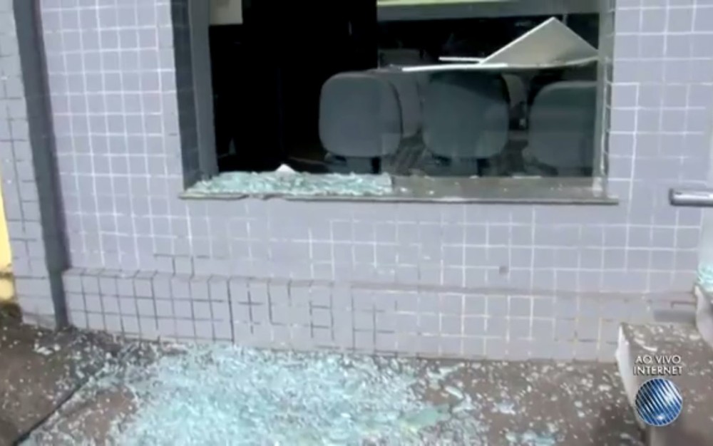Na ação, os bandidos ainda atiraram em imóveis e os disparos atingiram a sede da prefeitura da cidade, que fica perto da agência. O forro da agência caiu e as portas de vidro ficaram destruídas.