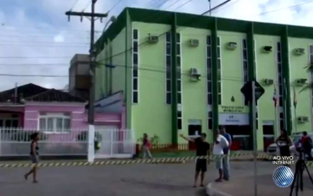 Tiros atingiram janela da sede da prefeitura da cidade, perto da agência (Foto: Reprodução/ TV Santa Cruz)