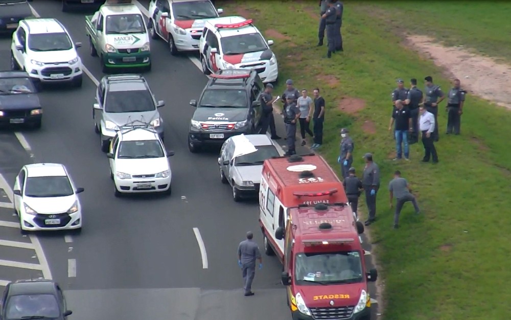 O acesso da Rodovia Anhanguera para a Avenida Prestes Maia, onde o criminoso morreu, ficou congestionado durante a manhã.