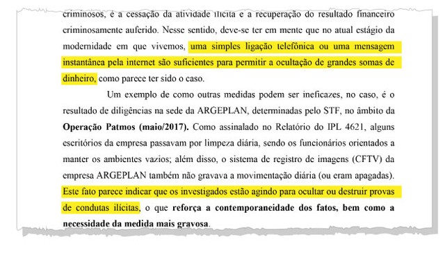Trecho do inquérito do pedido de prisão de Temer em que o juiz Marcelo Bretas cita os motivos da determinação — Foto: Reprodução