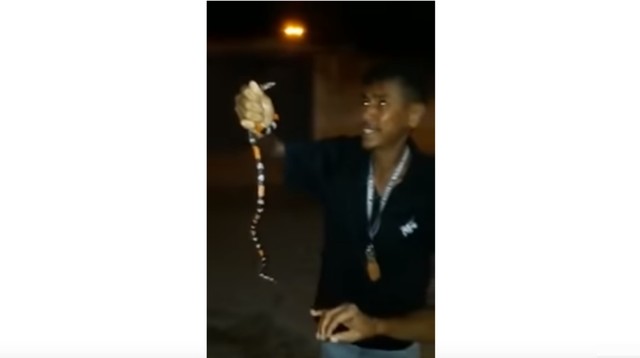 Segundo a polícia, a vítima estava alcoolizada e brincava com o animal quando o incidente aconteceu. Um vídeo publicado na internet mostra o ataque da cobra à vítima. [Veja acima]