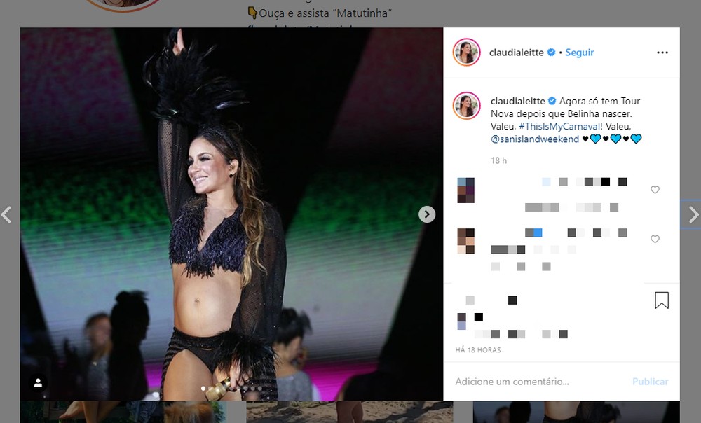 Claudia Leitte anuncia pausa nos shows em reta final de gravidez: 'Agora só depois que Belinha nascer' — Foto: Reprodução/Redes Sociais