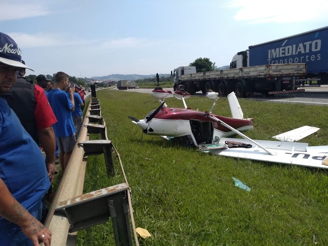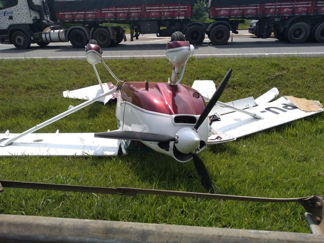 A aeronave ficou destruída e há destroços espelhados no canteiro da rodovia. Não houve congestionamento no local. *COM INFORMAÇÕES DO G1