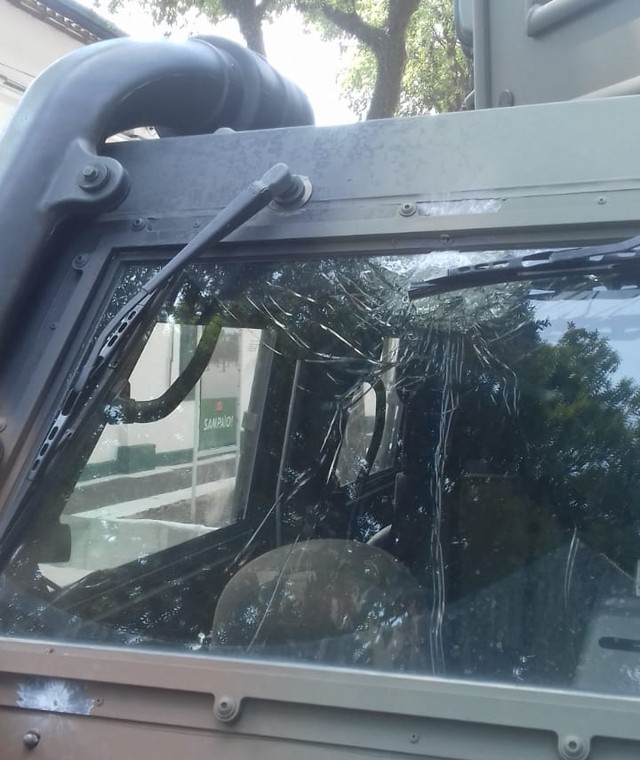 Viaturas do Exército foram atingidas por tiros pela manhã — Foto: Divulgação/Comando Militar do Leste
