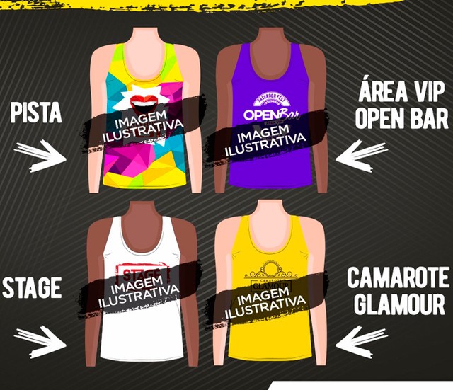 A entrega das camisas para a festa ocorre nos dias 21, 22 e 23 de setembro. As pessoas que vão curtir a festa na pista usarão uma camisa colorida. Quem for para a Área Vip Open Bar ficará de roxo. A galera que ficar no Camarote Glamour estará de Amarelo. Já quem for curtir o evento no Stage usará uma camisa branca.