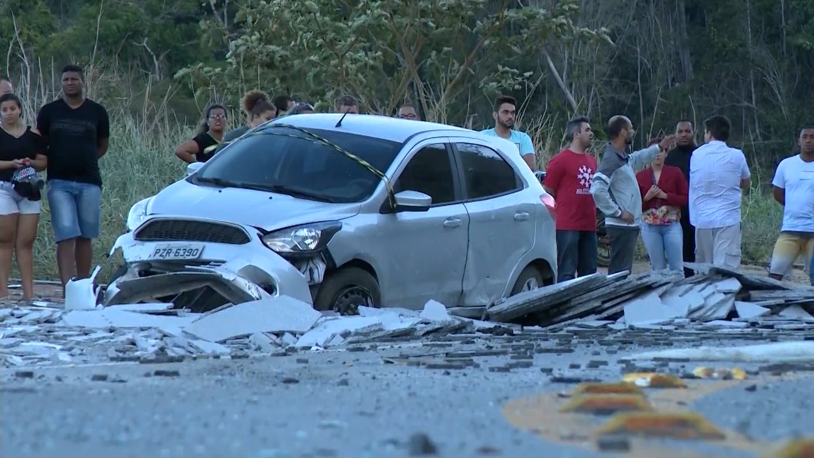 3.O Ford Ka, em seguida, colidiu com os pedaços de granito espalhados na via. O caminhão com granito foi apreendido para perícia.
